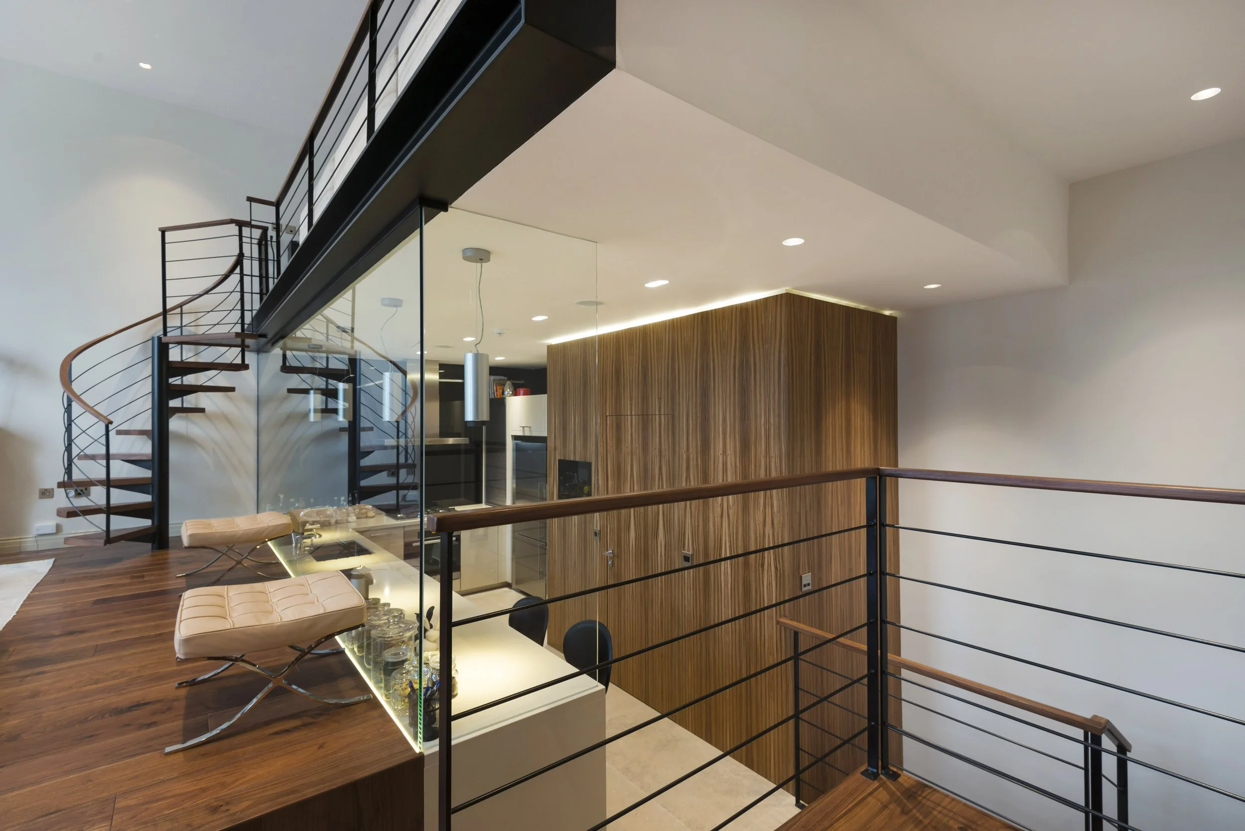 A particularly rewarding project shaped by the added complexity of close collaboration with clients living overseas. Despite the distance, we worked seamlessly to deliver a thoughtful and highly efficient transformation of the property. Central to the scheme was the introduction of a mezzanine level above the kitchen, unlocking valuable additional space and creating a striking architectural focal point.